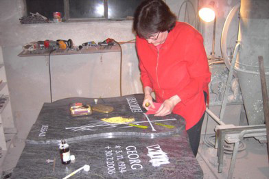 Unser ganz besonderer Service: Sie können bei uns im Werk selbst aussuchen und festlegen, aus welchen Steintranchen der Grabstein angefertigt werden soll. Das ist deshalb von Vorteil, weil viele Steine bei Farbe und Maserung von Natur aus große Unterschiede aufweisen. Kundendienst: Gräber richten, Inschriften erneuern, Grabsteine reinigen Grabauflösungen, Umarbeitungen werden von uns zuverlässig ausgeführt.
