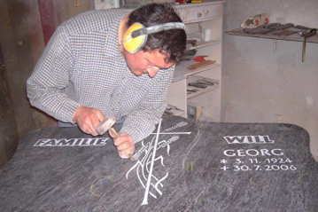 Durch unsere eigene Herstellung schaffen und erhalten wir Arbeitsplätze in der Region und bewahren das Wissen und Können um die Verarbeitung von Naturstein. Gut 95% unserer Grabsteine werden komplett in unserer Werkstatt angefertigt. Der Rest entsteht in Zusammenarbeit mit Steinbetrieben in Bayern und Sachsen. Wir packen keine Container aus Indien oder China aus und darauf sind wir stolz.